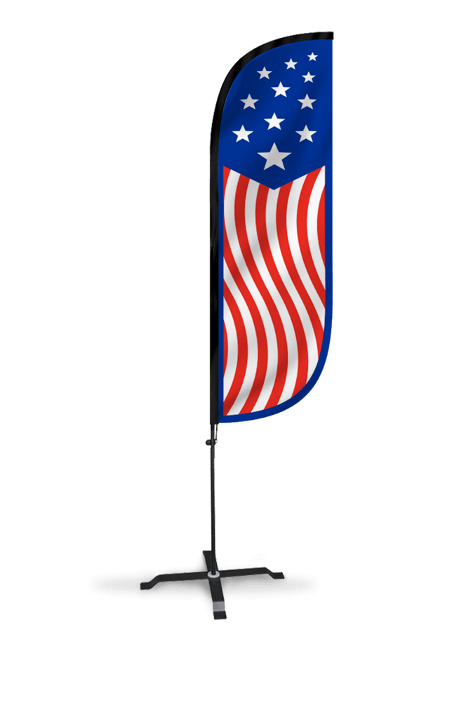 Show your American Pride with the stars and stripes in our American flag feather flag standard! Inflatable Bounce House For Sale's American flag feather flag can be used for so many purposes, for holidays, events, sales, pride, and much more!