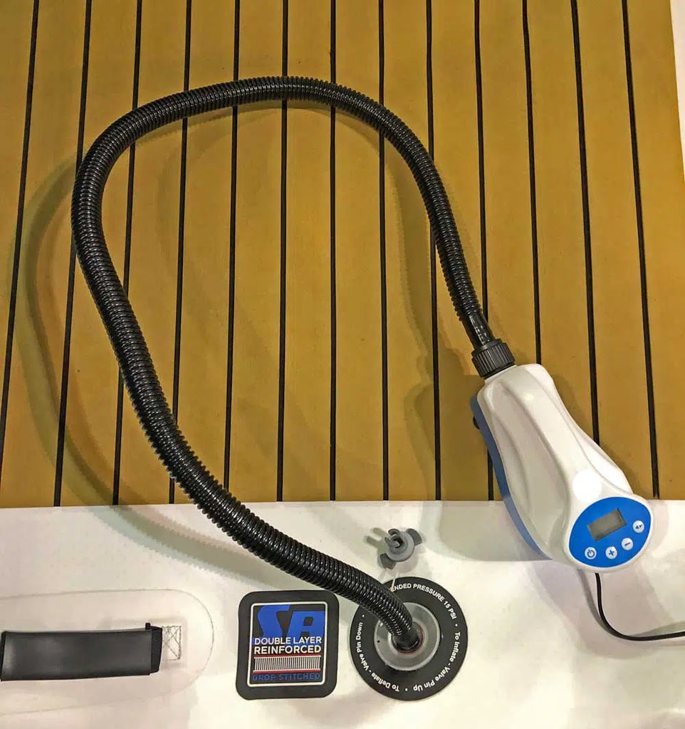 15 PSI Auto Set power inflator by Island Hopper is designed to quickly inflate any drop stitch inflatable product to a pre-set PSI.