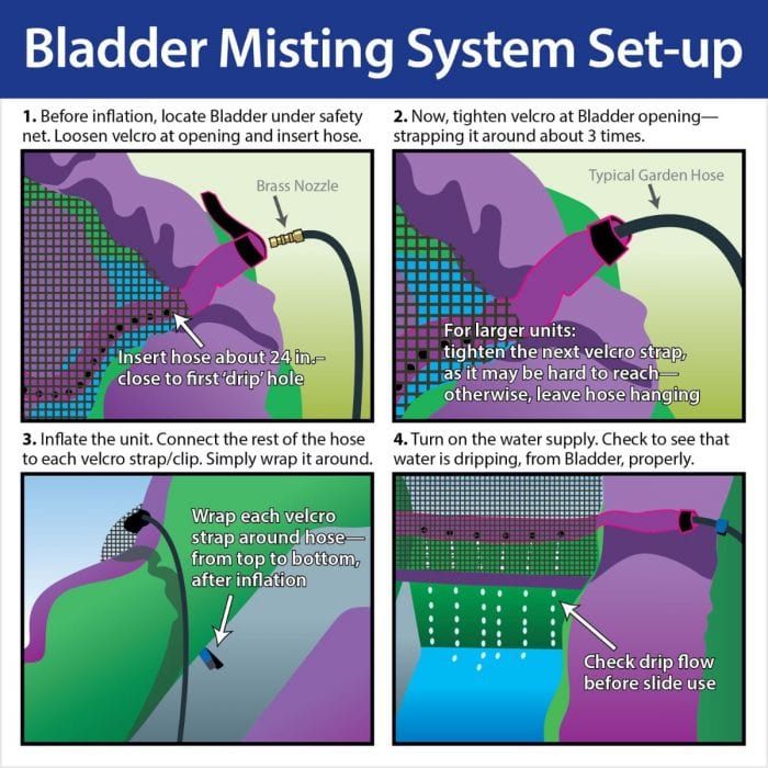 Bladder misting system attaches to a standard garden hose. Just connect it and you're all set!