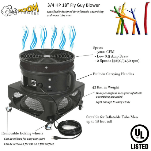 The Fly Guy Inflatable Tube Man is a perfect addition to any special event, creating a very "busy" atmosphere that is sure to grab attention from passing by on-lookers. If you are looking to add them as simply a promotional item to a sales event - these wacky wavy inflatables are simply hard to miss. Ideal for Car Dealerships, cell phone stores, and just about any grand opening event will be noticed when you place a Fly Guy Inflatable Tube Man in front of your store.