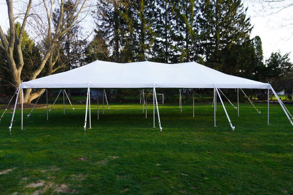 Setting up your 20-by-40 pole tent is no sweat at all! You need only a few additional crew members and a drop cloth. Use the drop cloth religiously and you’ll have many successful years with this tent.