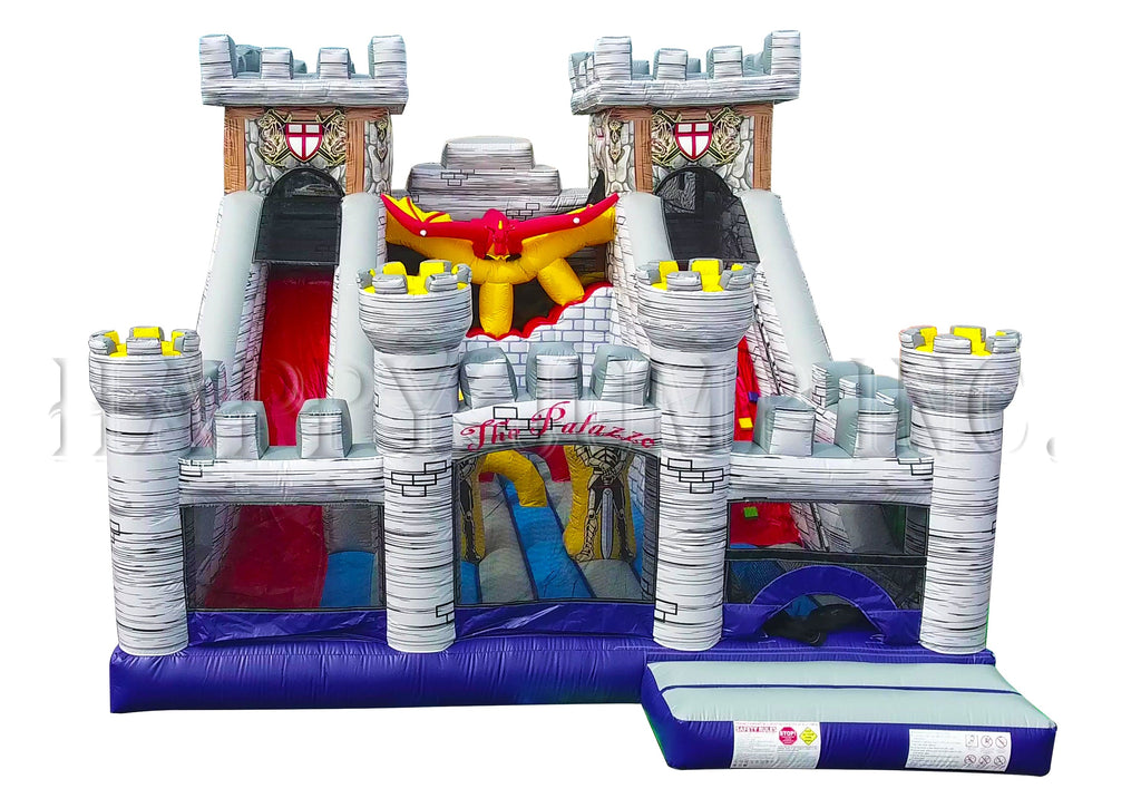Step into the world of medieval fantasy with our Palazzo Unit, featuring a stunning castle design complete with two gallant knight blow-ups standing guard. 🛡️👑 But that's not all - at the heart of the castle lies an imposing inflatable dragon, ready to challenge brave adventurers. 🐉🔥