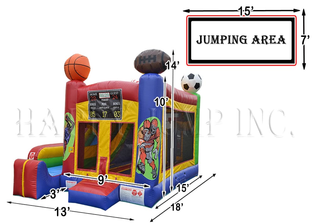 π Score big with our 5x Jump & Splash Sports Combo β a must-have addition to any rental fleet! π This inflatable combo is the perfect investment for those seeking a compact and multi-functional unit, delivering endless entertainment for all ages.