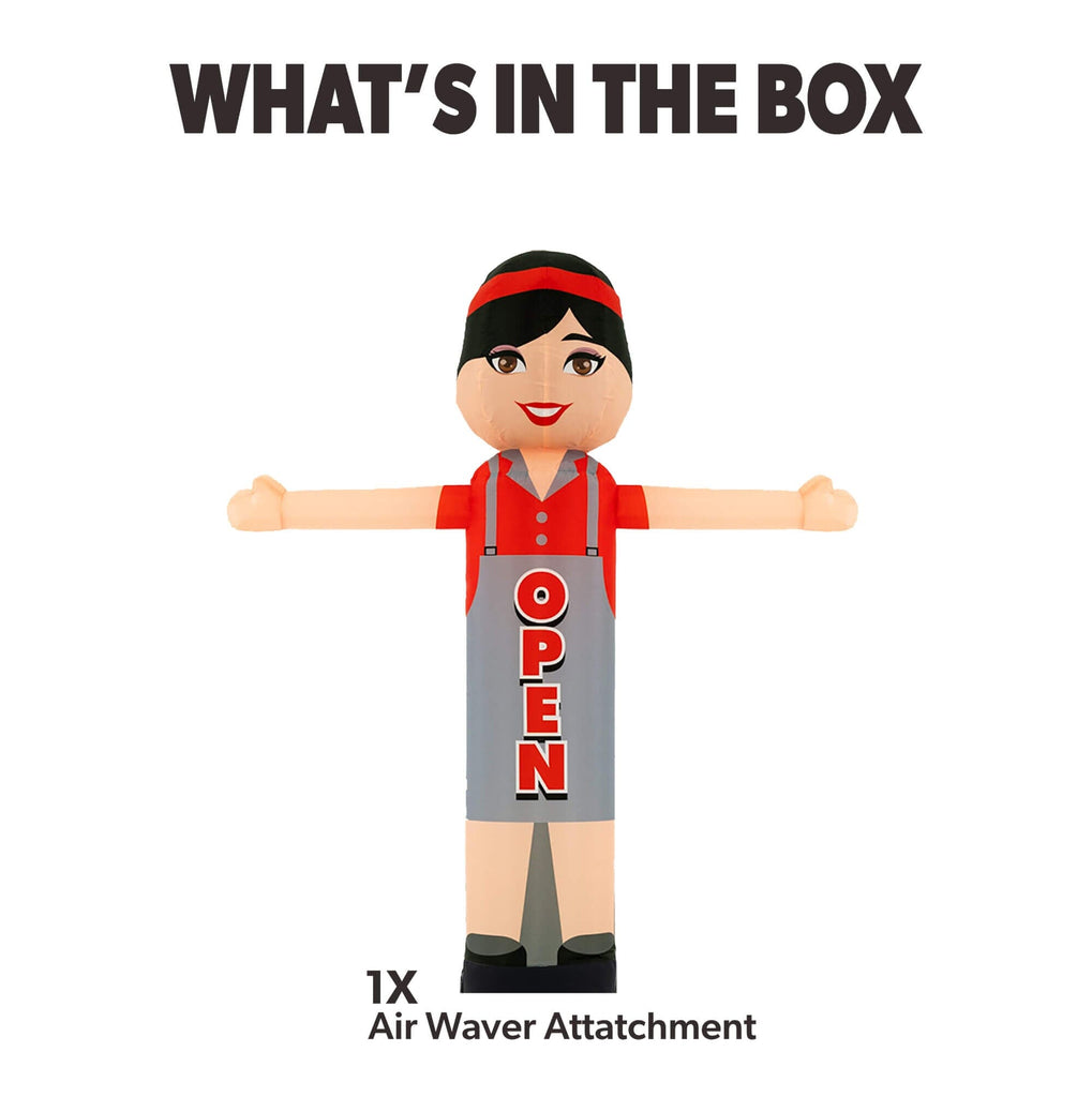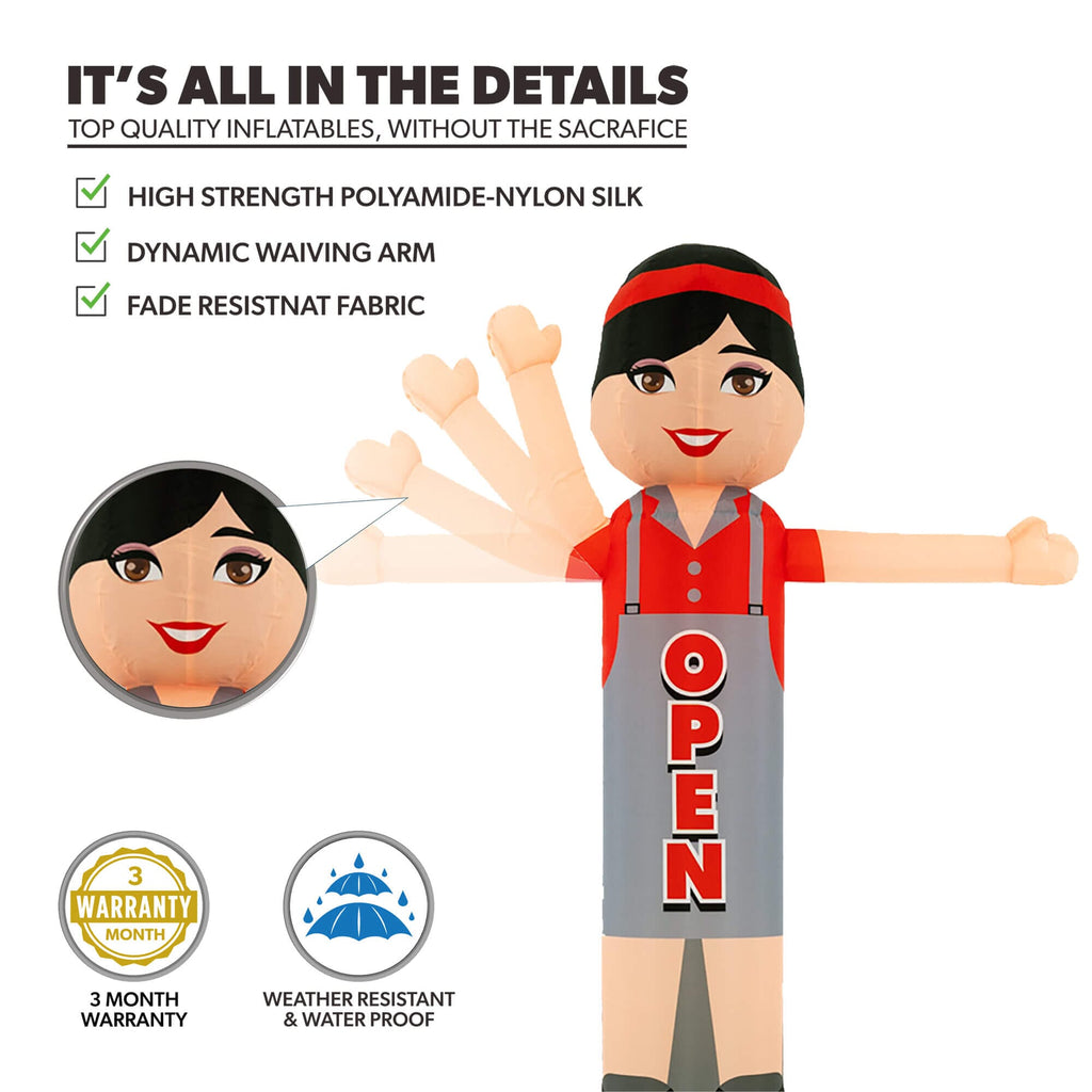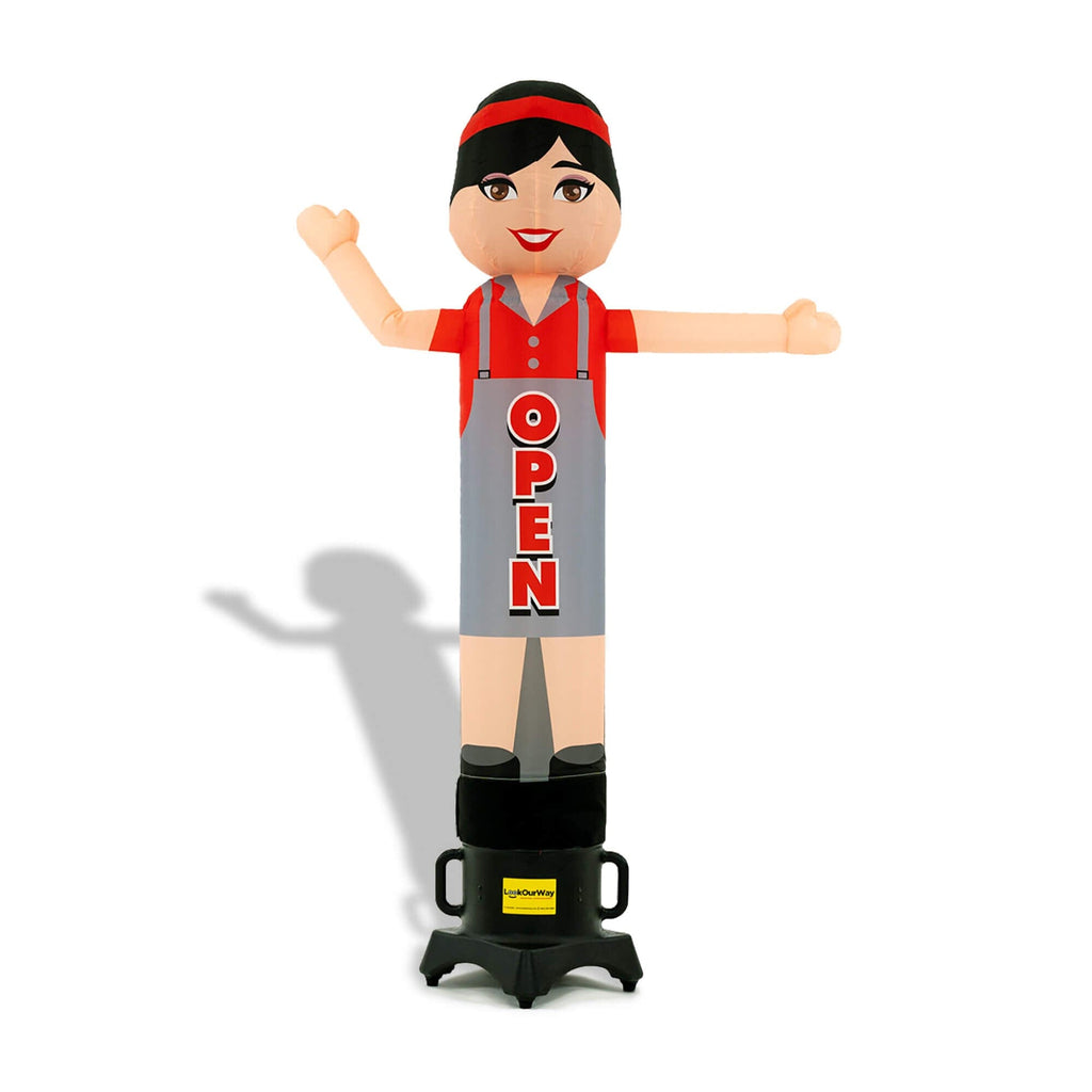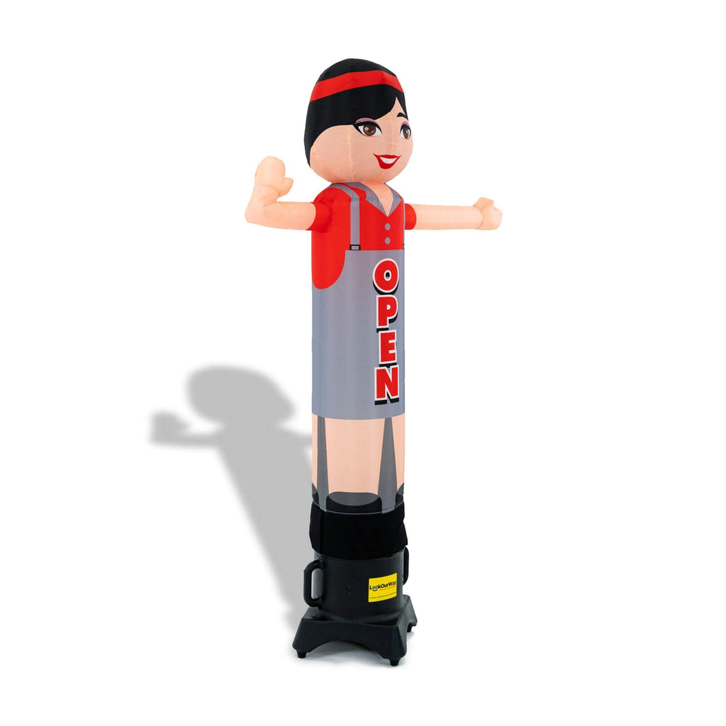 Looking to grab attention and bring customers through the door? The 6ft Open Woman Air Wavers® inflatable tube dancer is the perfect solution! Designed to attract instant attention, this vibrant, waving inflatable features bold “OPEN” lettering, making it ideal for restaurants, food trucks, cafes, retail stores, and food festivals.