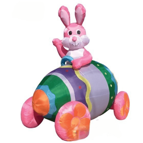 7' Air Blown Inflatable Pink Easter Bunny Egg Car Big Wheels