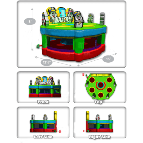 The price includes (1) 1.5 HP Blower, (1) Wacky Mole with Balls. Additional charges for IPS Systems or additional Wacky Moles. This unit comes with (1) inflatable hammer, (100) multi-colored balls, top and bottom tie-down tether straps, anchors, a heavy duty bag, and repair kit.