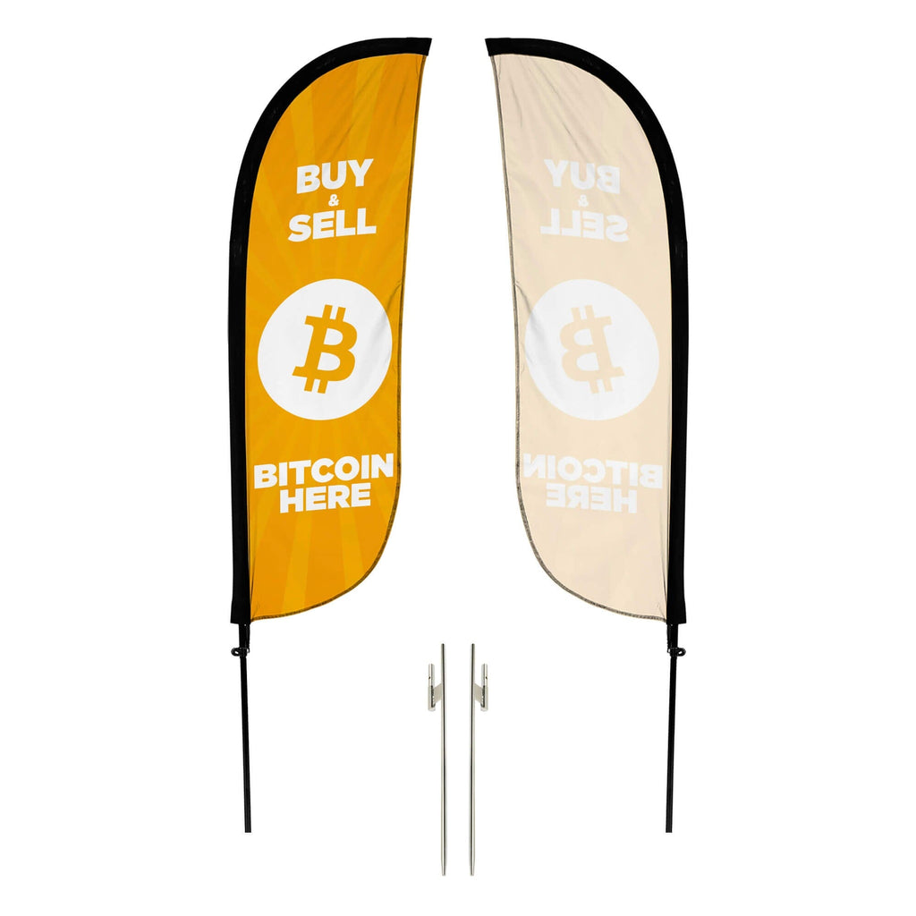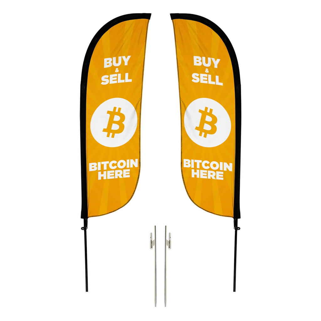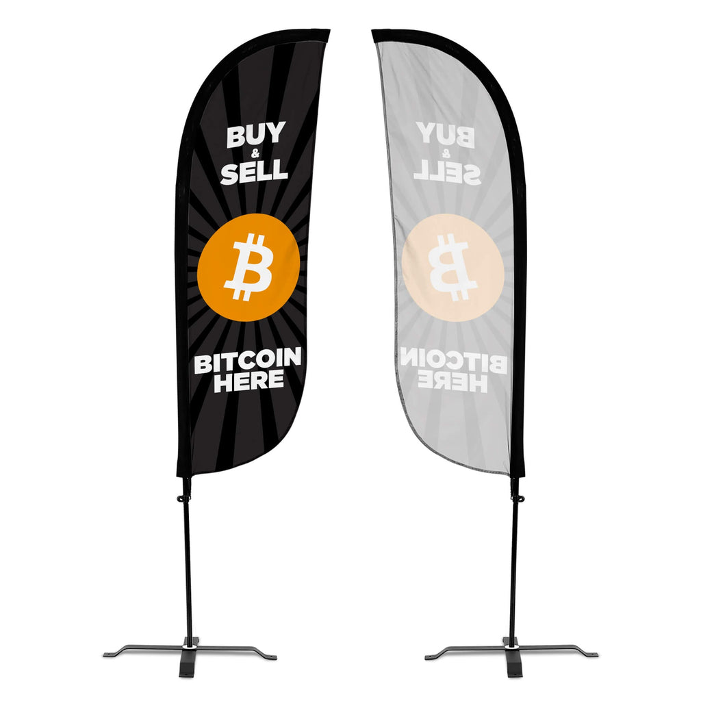 If you happen to see another online shop that offers a lower price than us within six months of your date please let us know and we’ll be happy to refund the difference on your original payment method. Moreover, because we are consistently working with our suppliers to get better rates we know that you can feel very comfortable and confident that you are seeing the best prices that can be provided for the products listed on our site. Moving forward if you find the same item that we carry on another website that has a lower price please submit that to us within six months of your purchase date and we will refund you the difference. If it is a case of seeing a lower price on another website and we need to send a partial refund simply email us the link to the exact product and brand from our site and also the link from our competitors site so we can inspect the pricing. Again this needs to be within six months from the date of your order and we will review your submission and apply a credit if necessary. Our 100% Shoppers Best Price Guarantee has some limitations: The item must have already been purchased from our site prior to asking for this to be reviewed and submitted. This does not include rebate programs or specific retailer programs such as buy three get one free type offers or any combination such as that are not eligible The item will need to be in stock from the competitors site that you’re submitting the information from The competitor must be an online store, they may not have a retail location (warehouse, showroom, or physical location) The website cannot be a wholesaler, liquidator, distributor, or auction website. Examples are eBay, Liquadation.com, Via Trading, overstock, etc. The competitor must also be someone who has been authorized by the supplier and/or manufacturer to resell the product you are inquiring about The Shoppers Best Price Policy must also include the product listing price and the shipping total, but will exclude any sales tax that gets added at the final purchasing invoiceAttract BIG attention to your BTM Machine franchise with a beautiful full color Feather Flag. Each flag proudly wears the BTM Machine logo and large "BUY & SELL BITCOIN HERE" text that is boldly printed down the middle of each flag. All LookOurWay flags are printed in full color with our industry leading Dye-Sublimation printing process, using premium UV-resistant inks. The flags are all hand finished and tested to ensure perfect fitment on our hardware.
