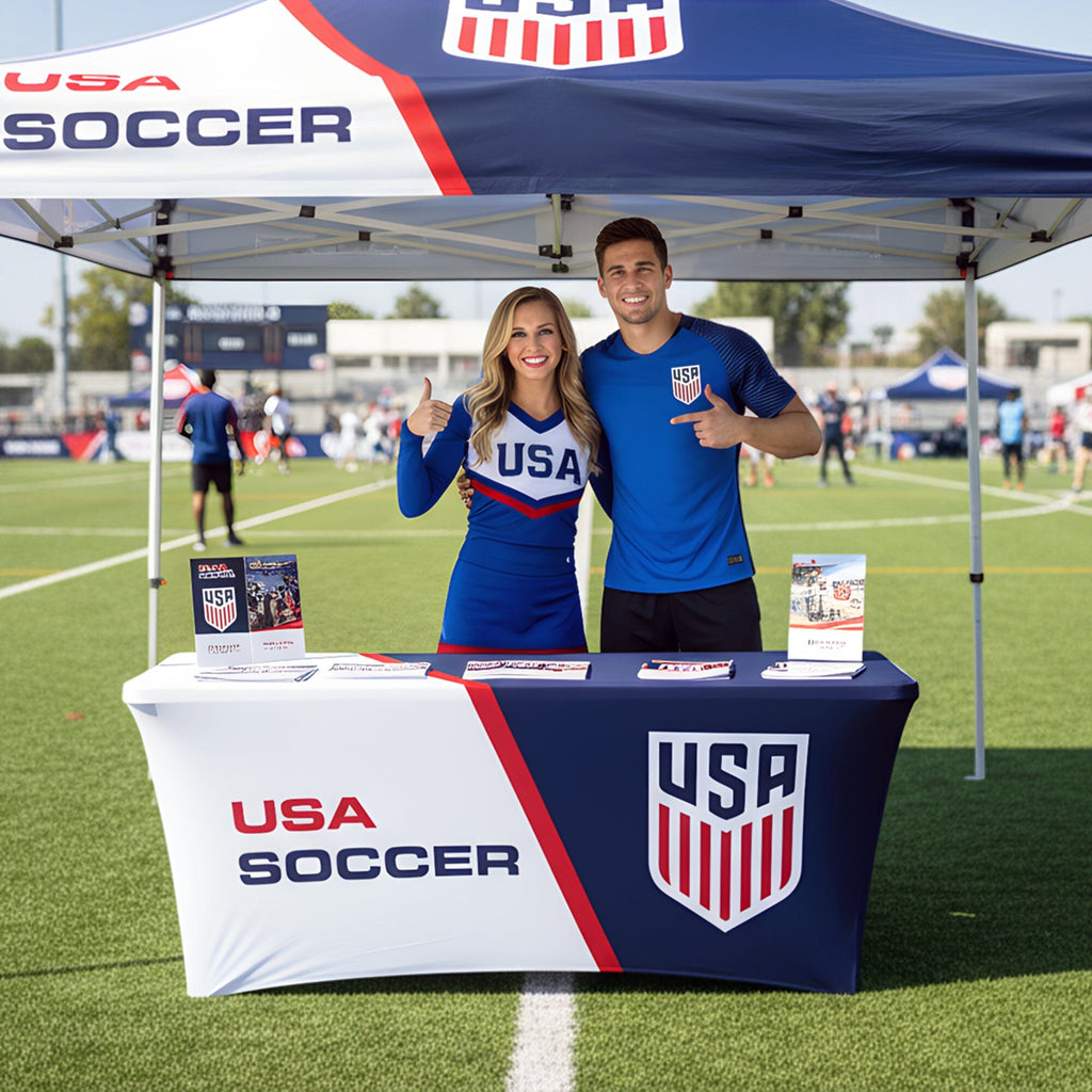 If you happen to see another online shop that offers a lower price than us within six months of your date please let us know and we’ll be happy to refund the difference on your original payment method. Moreover, because we are consistently working with our suppliers to get better rates we know that you can feel very comfortable and confident that you are seeing the best prices that can be provided for the products listed on our site. Moving forward if you find the same item that we carry on another website that has a lower price please submit that to us within six months of your purchase date and we will refund you the difference. If it is a case of seeing a lower price on another website and we need to send a partial refund simply email us the link to the exact product and brand from our site and also the link from our competitors site so we can inspect the pricing. Again this needs to be within six months from the date of your order and we will review your submission and apply a credit if necessary. Our 100% Shoppers Best Price Guarantee has some limitations: The item must have already been purchased from our site prior to asking for this to be reviewed and submitted. This does not include rebate programs or specific retailer programs such as buy three get one free type offers or any combination such as that are not eligible The item will need to be in stock from the competitors site that you’re submitting the information from The competitor must be an online store, they may not have a retail location (warehouse, showroom, or physical location) The website cannot be a wholesaler, liquidator, distributor, or auction website. Examples are eBay, Liquadation.com, Via Trading, overstock, etc. The competitor must also be someone who has been authorized by the supplier and/or manufacturer to resell the product you are inquiring about The Shoppers Best Price Policy must also include the product listing price and the shipping total, but will exclude any sales tax that gets added at the final purchasing invoiceElevate your brand presence at your next event with Inflatable Bounce House For Sale’s Custom Stretch Table Cover! Our premium 230g Spandex Polyester covers are not just durable, but also a canvas for your creativity. With our full-dye sublimation printing process, you can splash multiple colors and intricate designs across every inch—at no extra cost! Whether it’s a trade show or a community fair, make sure your booth stands out with vibrant visuals that capture attention instantly.