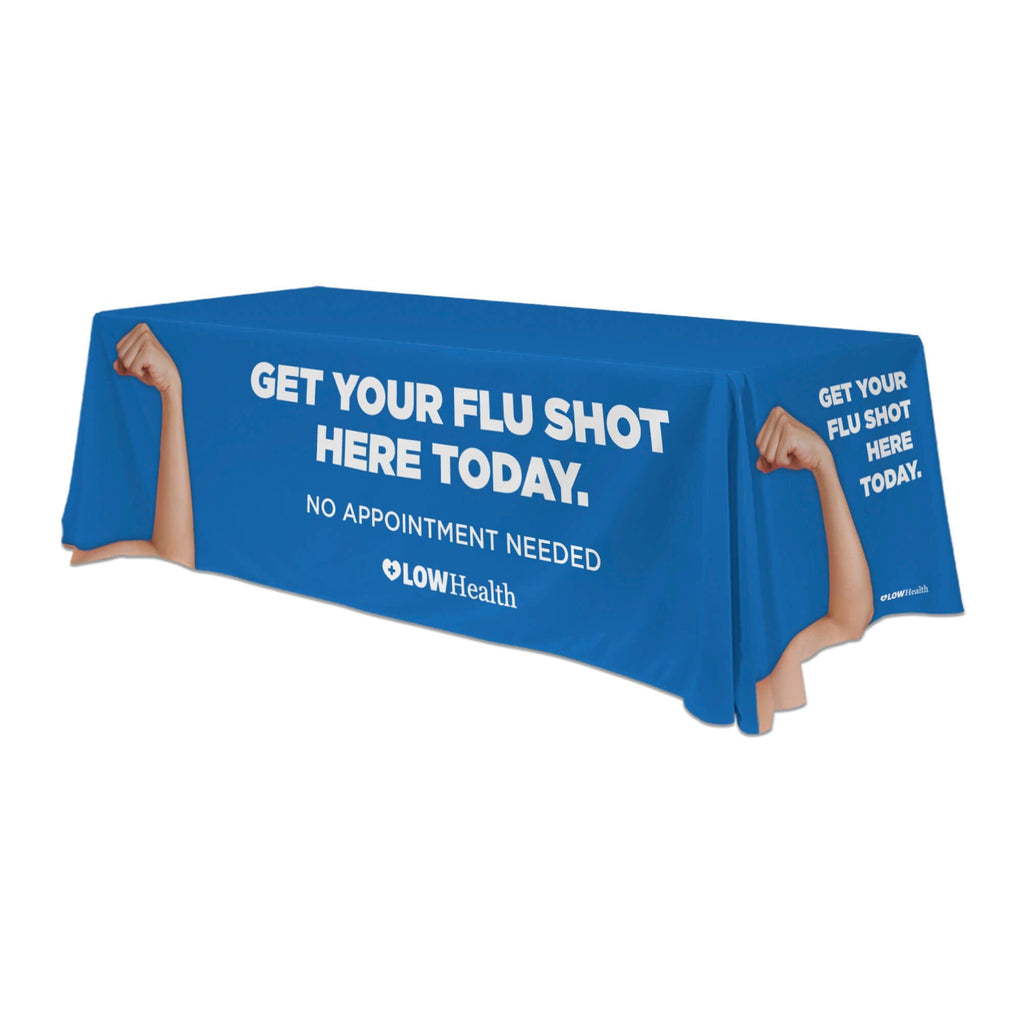 If you happen to see another online shop that offers a lower price than us within six months of your date please let us know and we’ll be happy to refund the difference on your original payment method. Moreover, because we are consistently working with our suppliers to get better rates we know that you can feel very comfortable and confident that you are seeing the best prices that can be provided for the products listed on our site. Moving forward if you find the same item that we carry on another website that has a lower price please submit that to us within six months of your purchase date and we will refund you the difference. If it is a case of seeing a lower price on another website and we need to send a partial refund simply email us the link to the exact product and brand from our site and also the link from our competitors site so we can inspect the pricing. Again this needs to be within six months from the date of your order and we will review your submission and apply a credit if necessary. Our 100% Shoppers Best Price Guarantee has some limitations: The item must have already been purchased from our site prior to asking for this to be reviewed and submitted. This does not include rebate programs or specific retailer programs such as buy three get one free type offers or any combination such as that are not eligible The item will need to be in stock from the competitors site that you’re submitting the information from The competitor must be an online store, they may not have a retail location (warehouse, showroom, or physical location) The website cannot be a wholesaler, liquidator, distributor, or auction website. Examples are eBay, Liquadation.com, Via Trading, overstock, etc. The competitor must also be someone who has been authorized by the supplier and/or manufacturer to resell the product you are inquiring about The Shoppers Best Price Policy must also include the product listing price and the shipping total, but will exclude any sales tax that gets added at the final purchasing invoiceElevate your brand presence at your next event with LookOurWay's Custom Table Throw! Our premium 260g (9oz.) polyester covers are not just durable, but also a canvas for your creativity. With our full-dye sublimation printing process, you can splash multiple colors and intricate designs across every inch—at no extra cost! Whether it's a trade show or a community fair, make sure your booth stands out with vibrant visuals that capture attention instantly. Plus, enjoy our free design service to bring your vision to life effortlessly. Ready to make an impression? Let’s get started!