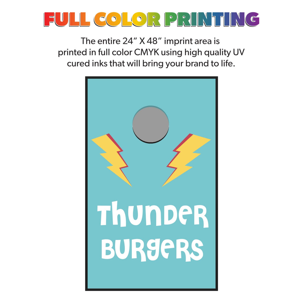 If you happen to see another online shop that offers a lower price than us within six months of your date please let us know and we’ll be happy to refund the difference on your original payment method. Moreover, because we are consistently working with our suppliers to get better rates we know that you can feel very comfortable and confident that you are seeing the best prices that can be provided for the products listed on our site. Moving forward if you find the same item that we carry on another website that has a lower price please submit that to us within six months of your purchase date and we will refund you the difference. If it is a case of seeing a lower price on another website and we need to send a partial refund simply email us the link to the exact product and brand from our site and also the link from our competitors site so we can inspect the pricing. Again this needs to be within six months from the date of your order and we will review your submission and apply a credit if necessary. Our 100% Shoppers Best Price Guarantee has some limitations: The item must have already been purchased from our site prior to asking for this to be reviewed and submitted. This does not include rebate programs or specific retailer programs such as buy three get one free type offers or any combination such as that are not eligible The item will need to be in stock from the competitors site that you’re submitting the information from The competitor must be an online store, they may not have a retail location (warehouse, showroom, or physical location) The website cannot be a wholesaler, liquidator, distributor, or auction website. Examples are eBay, Liquadation.com, Via Trading, overstock, etc. The competitor must also be someone who has been authorized by the supplier and/or manufacturer to resell the product you are inquiring about The Shoppers Best Price Policy must also include the product listing price and the shipping total, but will exclude any sales tax that gets added at the final purchasing invoiceWhether you’re looking to promote your business at a trade show, outdoor event, or you just want to up the ante on your tailgate game, our Custom Wood Cornhole Boards are the perfect way to boost visibility and get people talking about your company. These eye-catching boards are lightweight and easy to set up and transport, so they’re perfect for any occasion. This promotional game can be used for almost every attention-grabbing occasion and will help put potential customers in a casual mood which will help you both get your sales pitch across, and form a friendly bond. You'll be able to convey your message in a powerful and creative style with custom colors and a printed logo.