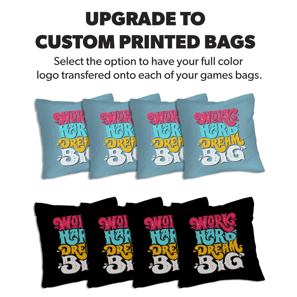 All Orders Over $500 to Receive 100 Multi-Colored Pit Balls Completely Free With Your Purchase - Use Coupon Code PITBALL100Whether you’re looking to promote your business at a trade show, outdoor event, or you just want to up the ante on your tailgate game, our Custom Wood Cornhole Boards are the perfect way to boost visibility and get people talking about your company. These eye-catching boards are lightweight and easy to set up and transport, so they’re perfect for any occasion. This promotional game can be used for almost every attention-grabbing occasion and will help put potential customers in a casual mood which will help you both get your sales pitch across, and form a friendly bond. You'll be able to convey your message in a powerful and creative style with custom colors and a printed logo.
