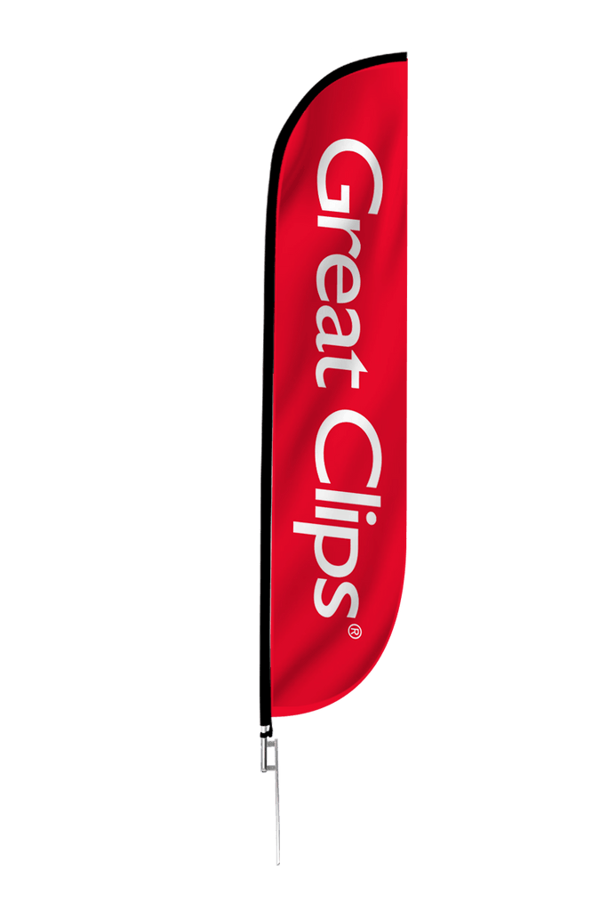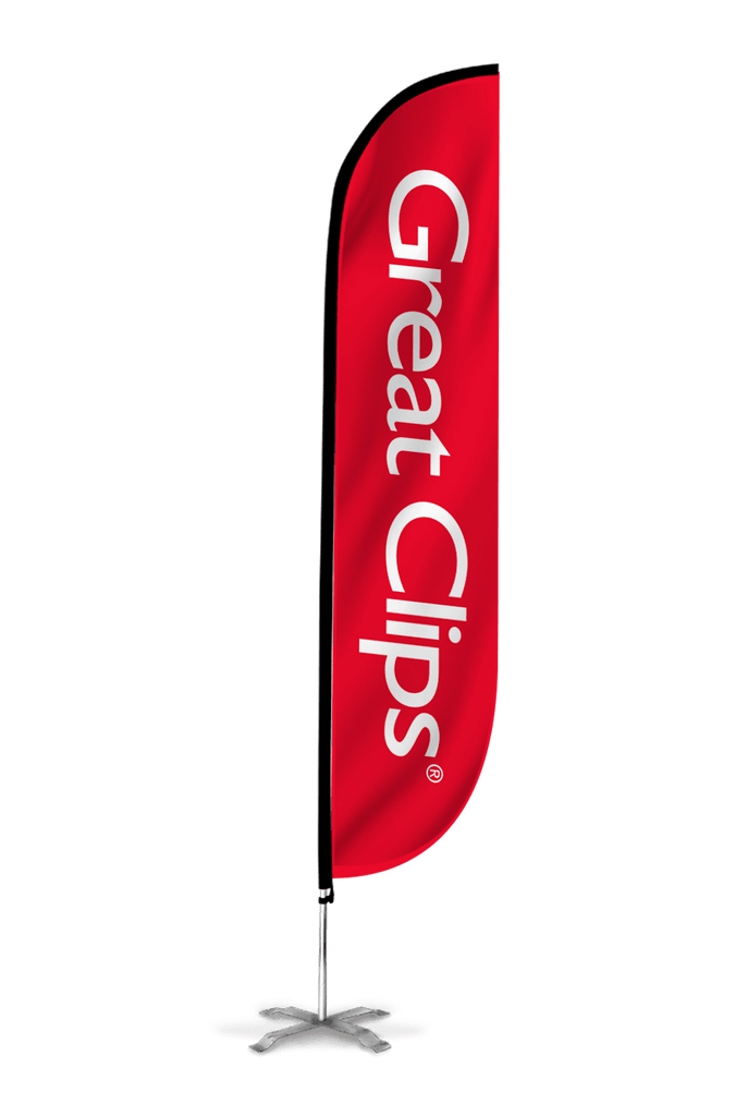 Great Clips is making haircuts great again! Feather Flags are the simplest, quickest, and most cost-effective way to increase traffic to your Great Clips business, and the great clips feather flag will bring in customers looking for a great and fresh cut! Perfect for letting everyone know where to go for their next hair appointment. Place feather flags into the ground with the ground spike, or use the X-Stand option for the sidewalk. In stock and ready to ship, get your Great Clips Feather Flag today!