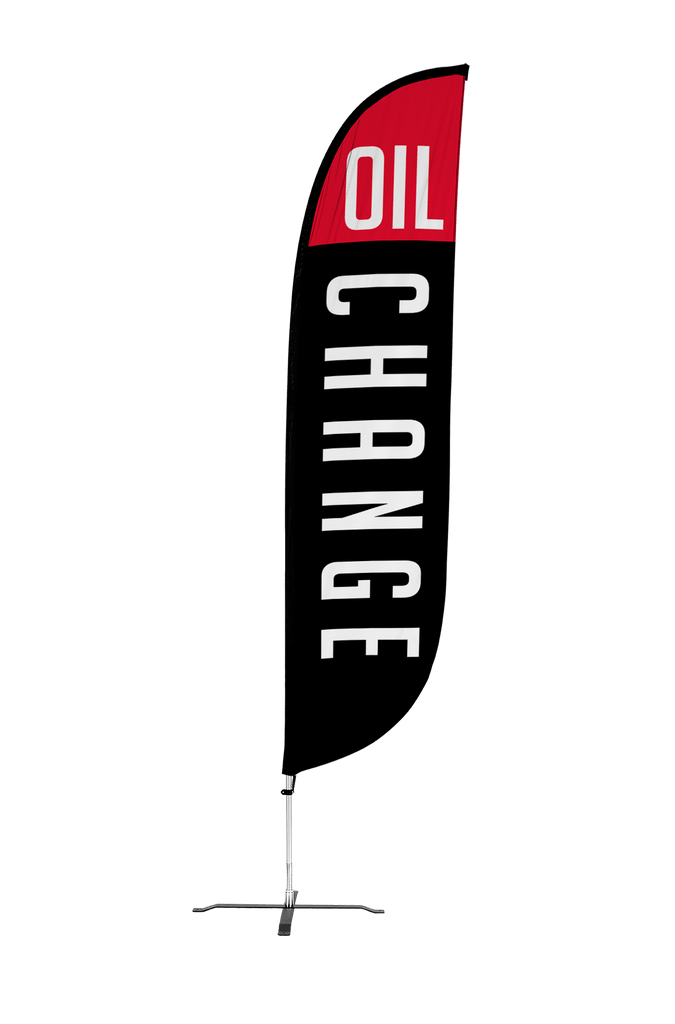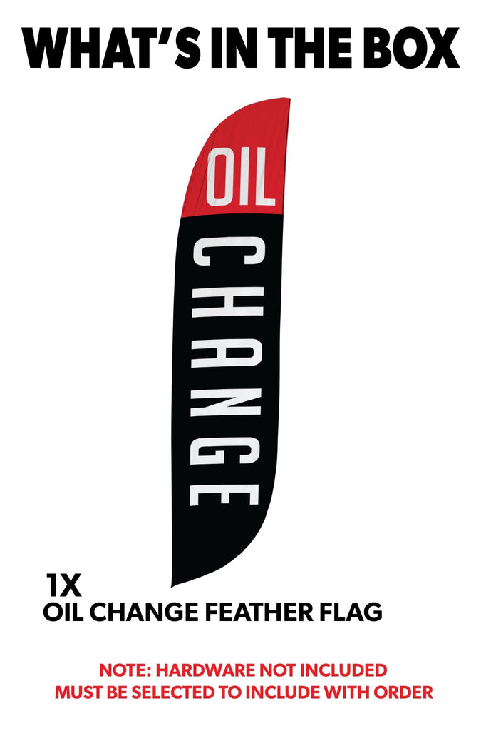 If you happen to see another online shop that offers a lower price than us within six months of your date please let us know and we’ll be happy to refund the difference on your original payment method. Moreover, because we are consistently working with our suppliers to get better rates we know that you can feel very comfortable and confident that you are seeing the best prices that can be provided for the products listed on our site. Moving forward if you find the same item that we carry on another website that has a lower price please submit that to us within six months of your purchase date and we will refund you the difference. If it is a case of seeing a lower price on another website and we need to send a partial refund simply email us the link to the exact product and brand from our site and also the link from our competitors site so we can inspect the pricing. Again this needs to be within six months from the date of your order and we will review your submission and apply a credit if necessary. Our 100% Shoppers Best Price Guarantee has some limitations: The item must have already been purchased from our site prior to asking for this to be reviewed and submitted. This does not include rebate programs or specific retailer programs such as buy three get one free type offers or any combination such as that are not eligible The item will need to be in stock from the competitors site that you’re submitting the information from The competitor must be an online store, they may not have a retail location (warehouse, showroom, or physical location) The website cannot be a wholesaler, liquidator, distributor, or auction website. Examples are eBay, Liquadation.com, Via Trading, overstock, etc. The competitor must also be someone who has been authorized by the supplier and/or manufacturer to resell the product you are inquiring about The Shoppers Best Price Policy must also include the product listing price and the shipping total, but will exclude any sales tax that gets added at the final purchasing invoiceThis oil change feather flag will remind everyone to take care of their car's regular maintenance. All who drive by will start to think about their next oil change and now they'll know that you offer oil changes. Available in eye-catching red and yellow or black and red, the oil change feather flag will bring new customers into your shop to get their car's maintenance up to speed. Let this feather flag draw the attention of potential customers from far away. These flags can be placed in grass or on a sidewalk or parking lot depending on which base you choose.