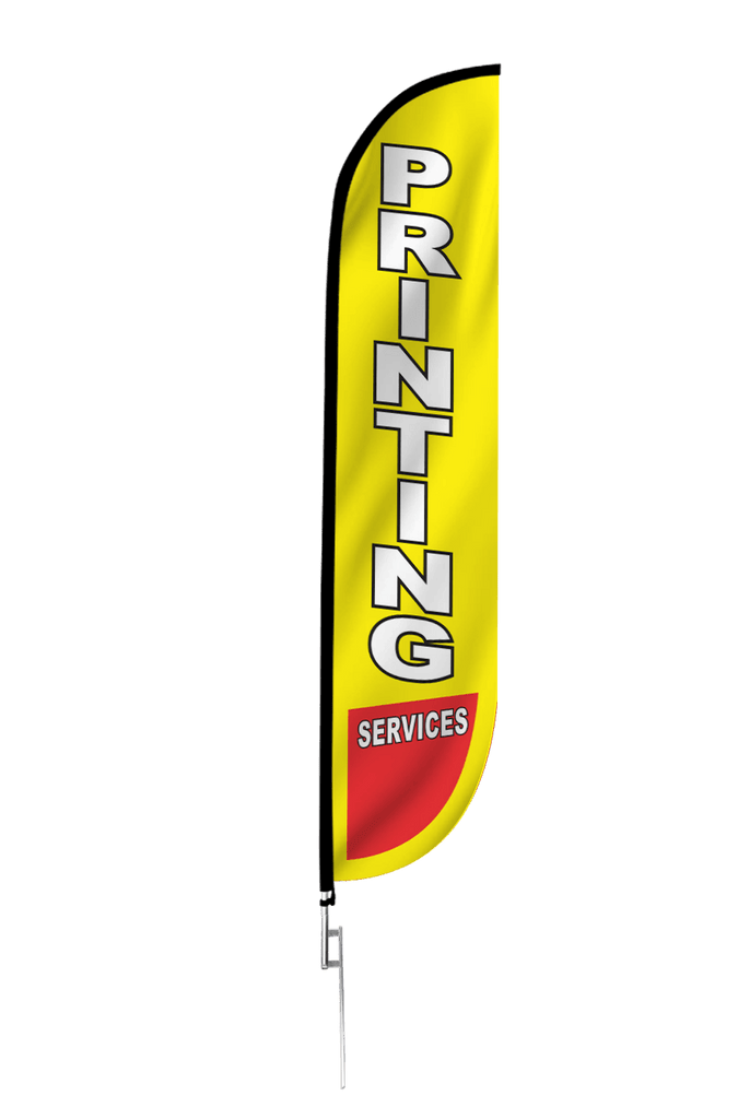 If you offer printing services, you’ll want the Printing Services feather flag in Yellow and Red to advertise your business. Make sure your customers know where to get thngs printed, copied and more! These Feather flags are the most cost efficient and easy way to advertise your printing services to all who pass by. In stock and ready to ship, get your feather flags today!