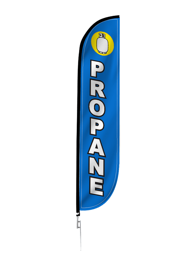 - 1 12ft "Propane" Feather Flag in light blue with propane image and bold lettering (as pictured)