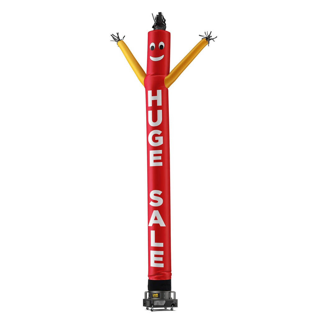 If you happen to see another online shop that offers a lower price than us within six months of your date please let us know and we’ll be happy to refund the difference on your original payment method. Moreover, because we are consistently working with our suppliers to get better rates we know that you can feel very comfortable and confident that you are seeing the best prices that can be provided for the products listed on our site. Moving forward if you find the same item that we carry on another website that has a lower price please submit that to us within six months of your purchase date and we will refund you the difference. If it is a case of seeing a lower price on another website and we need to send a partial refund simply email us the link to the exact product and brand from our site and also the link from our competitors site so we can inspect the pricing. Again this needs to be within six months from the date of your order and we will review your submission and apply a credit if necessary. Our 100% Shoppers Best Price Guarantee has some limitations: The item must have already been purchased from our site prior to asking for this to be reviewed and submitted. This does not include rebate programs or specific retailer programs such as buy three get one free type offers or any combination such as that are not eligible The item will need to be in stock from the competitors site that you’re submitting the information from The competitor must be an online store, they may not have a retail location (warehouse, showroom, or physical location) The website cannot be a wholesaler, liquidator, distributor, or auction website. Examples are eBay, Liquadation.com, Via Trading, overstock, etc. The competitor must also be someone who has been authorized by the supplier and/or manufacturer to resell the product you are inquiring about The Shoppers Best Price Policy must also include the product listing price and the shipping total, but will exclude any sales tax that gets added at the final purchasing invoiceThe 20ft tall Huge Sale Air Dancers® Inflatable Tube Man attachment comes with a red body and yellow flailing arms. Embroidered vertically down the center of the tube in huge white letters is the phrase “HUGE SALE”. Air Dancers® brand of inflatable tube men use only the best, most durable, and optimized performance materials which allow for eye-catching attention grabbing dance moves at sky-scraping heights of over 20ft tall. Proven to increase traffic to your store or franchise, advertise your business outdoors with Air Dancers® inflatable tube men today.