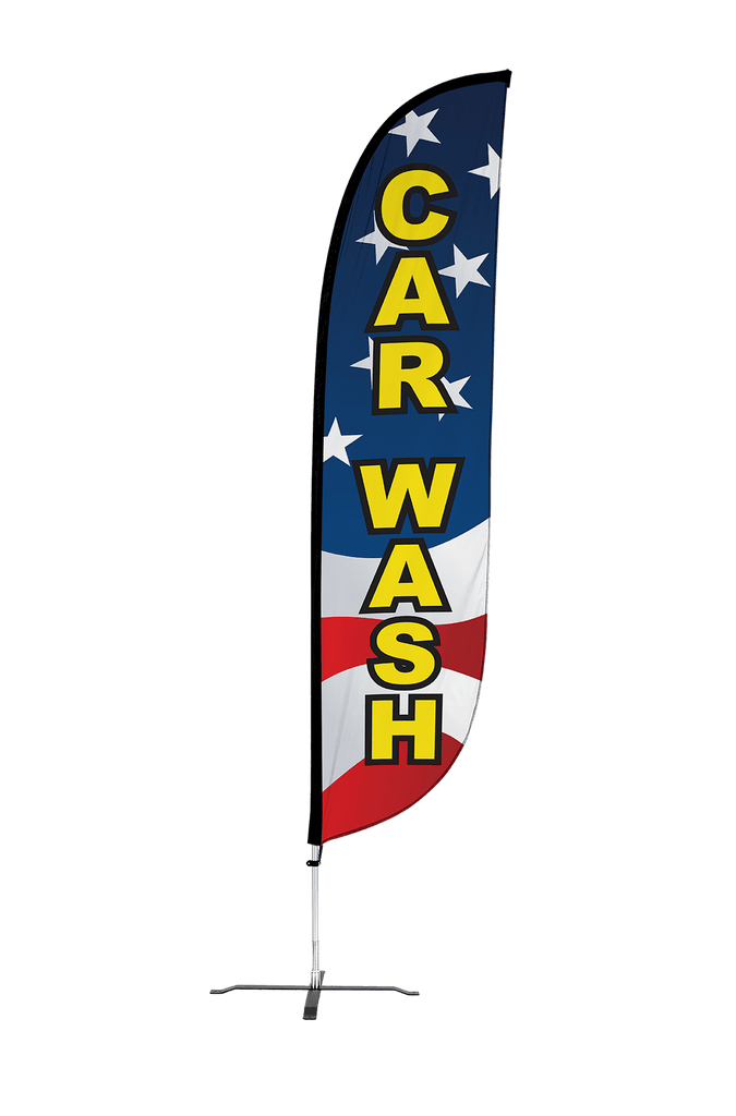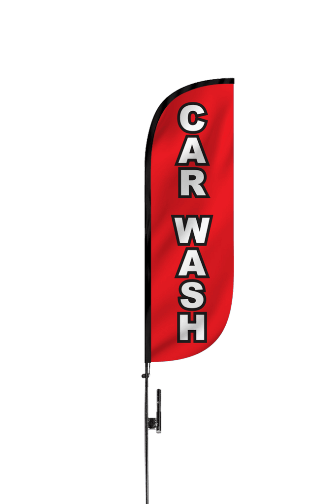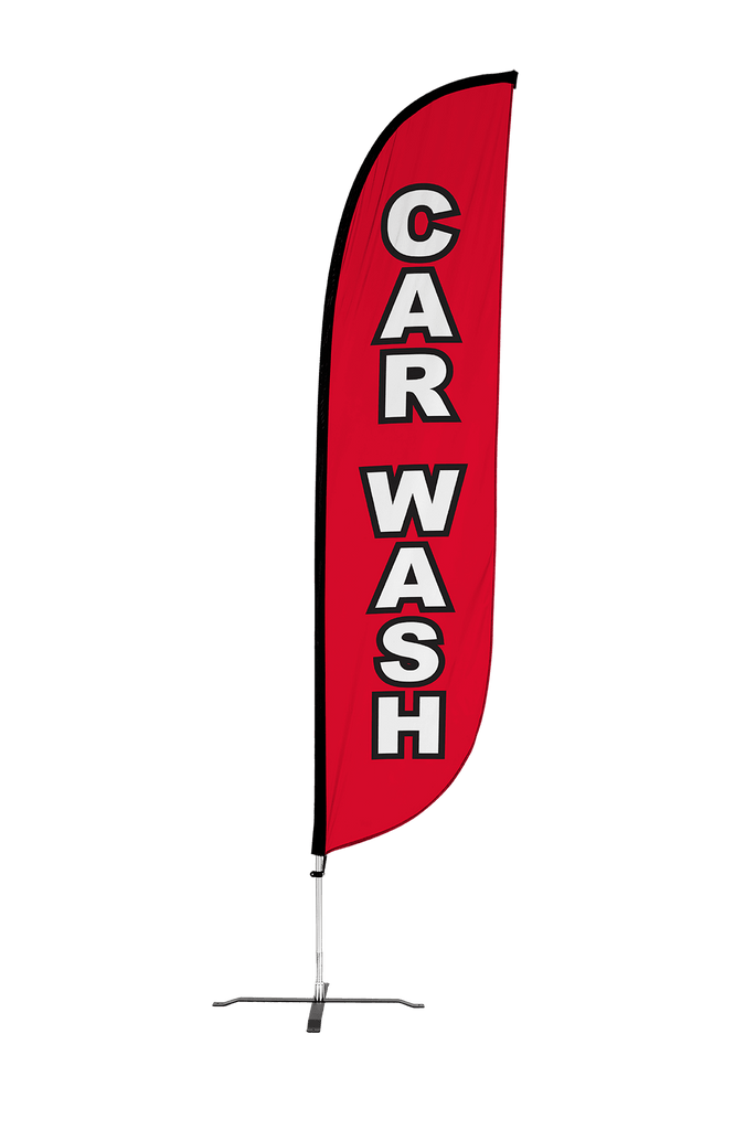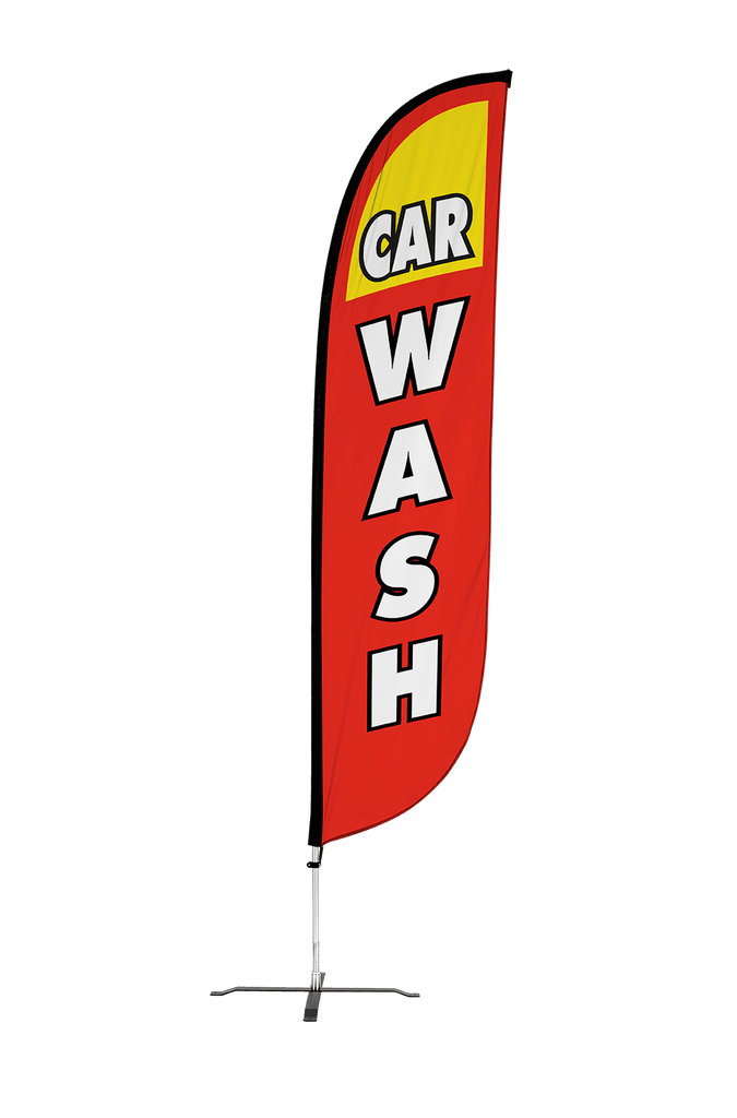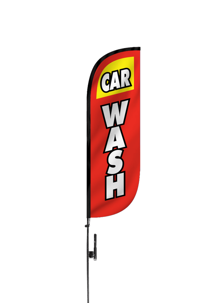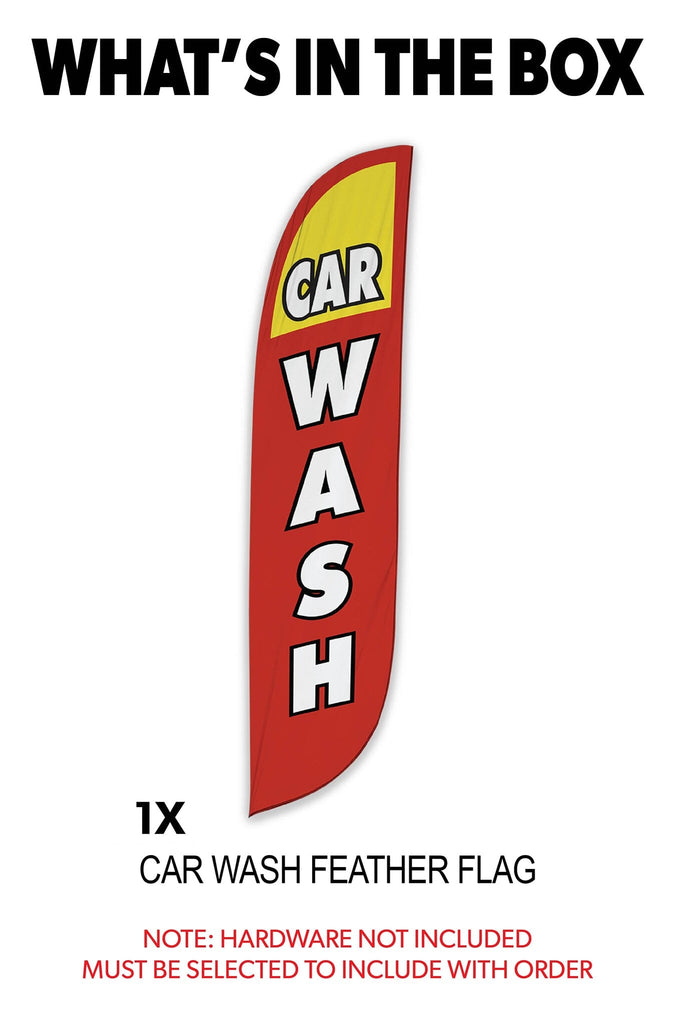 - 1 12ft "Car Wash" Feather Flag in red & yellow with bold lettering (as pictured)