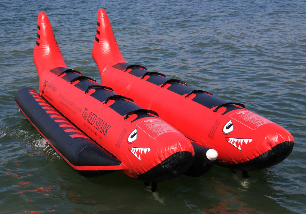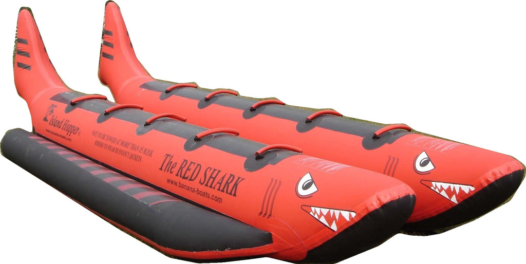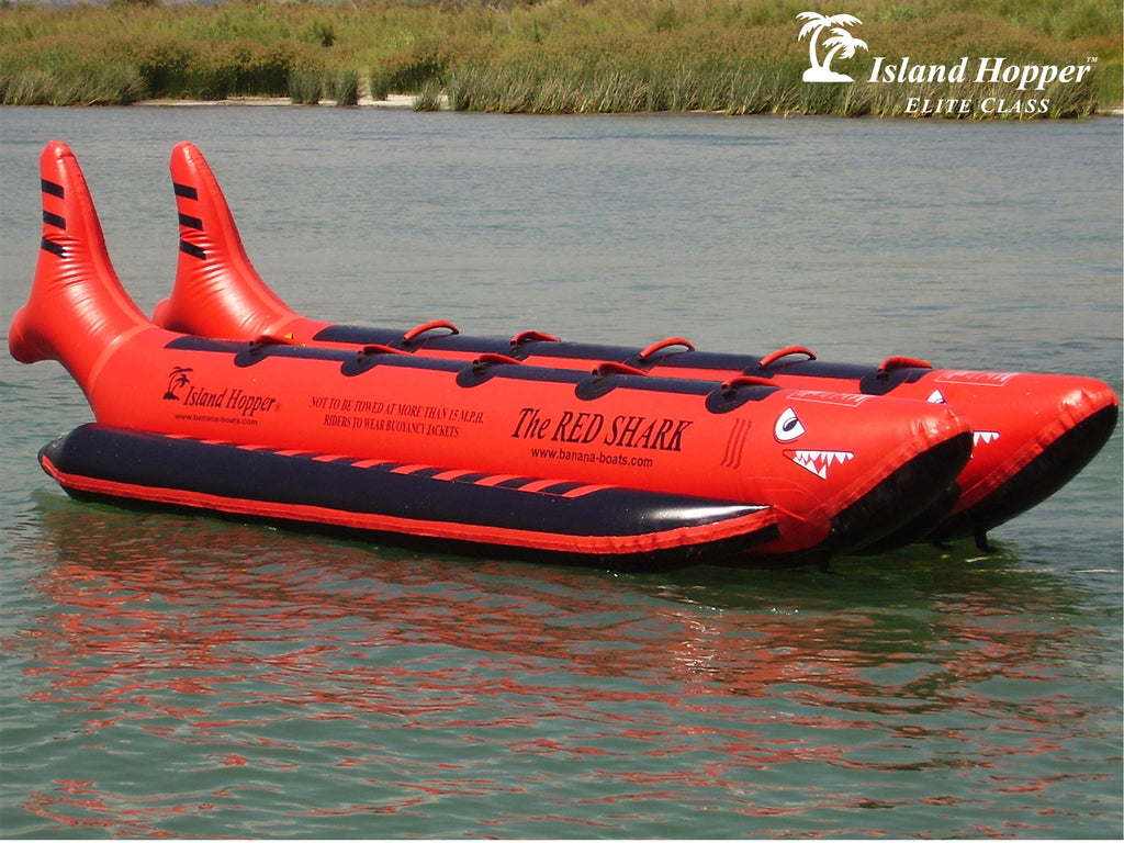 All Orders Over $500 to Receive 100 Multi-Colored Pit Balls Completely Free With Your Purchase - Use Coupon Code PITBALL100The Island Hopper® “Elite Class” 10 passenger Red Shark banana boat was designed for beach commercial operations and summer camps. Because it is wider and more stable, it is excellent in choppy water conditions and ocean use.