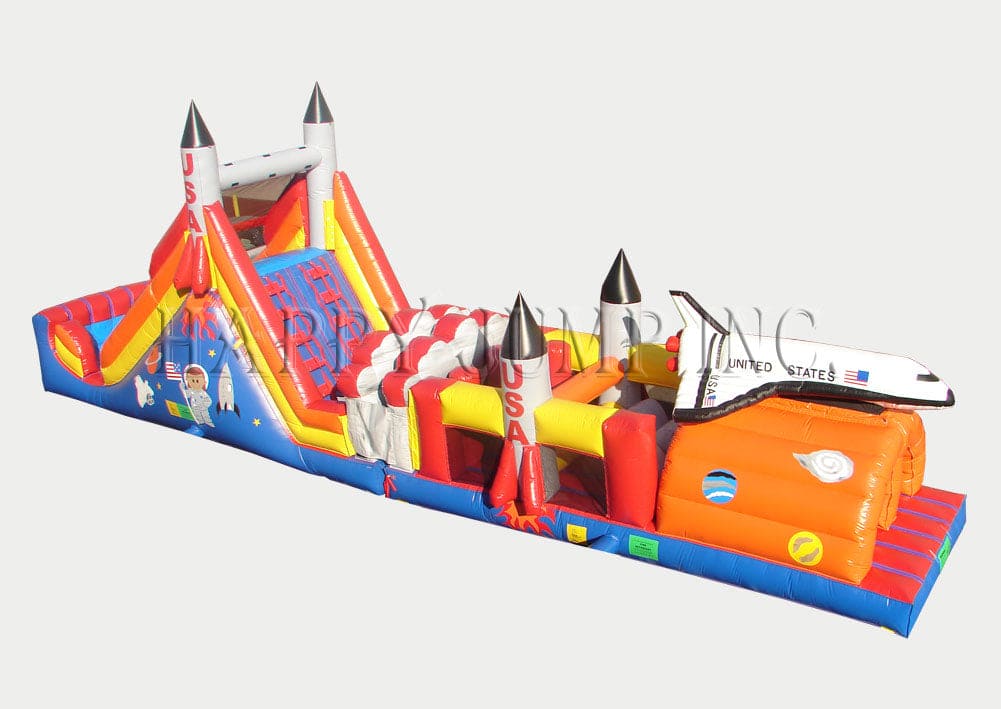 Blast off into space with the 52’ Shuttle Obstacle Challenge! Featuring pop-up rockets and a space-themed design, this obstacle course will make you feel like you're on a real space mission. Team up with fellow astronauts to navigate through challenging tunnels and squeeze through tight spaces. Whether wet or dry, this mission promises infinite fun!