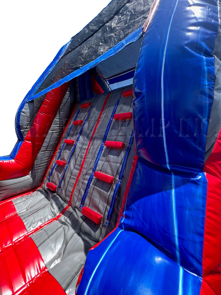 The 45' Backyard Blue Rush with Pool is an ideal option for rentals and spaces with limited room. This inflatable obstacle course features challenging obstacles and a thrilling 13' slide that leads directly into a spacious pool, adding an extra element of excitement.