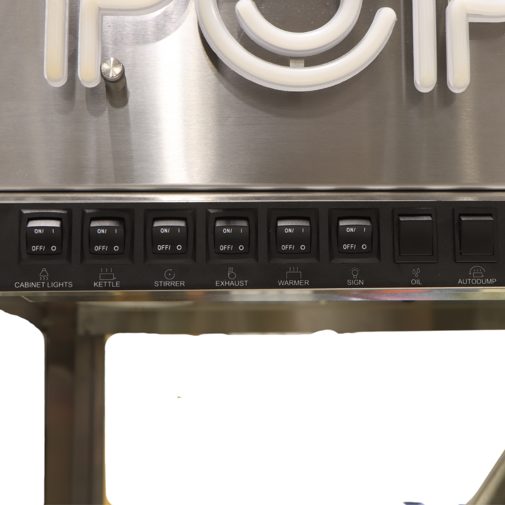 The 32 oz model is capable of popping up to 640 oz per hour. Perfect for bustling venues! Its programmable LED neon sign helps attract attention, while the forced air
