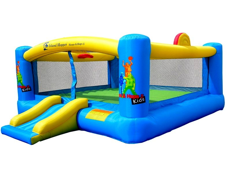 If you happen to see another online shop that offers a lower price than us within six months of your date please let us know and we’ll be happy to refund the difference on your original payment method. Moreover, because we are consistently working with our suppliers to get better rates we know that you can feel very comfortable and confident that you are seeing the best prices that can be provided for the products listed on our site. Moving forward if you find the same item that we carry on another website that has a lower price please submit that to us within six months of your purchase date and we will refund you the difference. If it is a case of seeing a lower price on another website and we need to send a partial refund simply email us the link to the exact product and brand from our site and also the link from our competitors site so we can inspect the pricing. Again this needs to be within six months from the date of your order and we will review your submission and apply a credit if necessary. Our 100% Shoppers Best Price Guarantee has some limitations: The item must have already been purchased from our site prior to asking for this to be reviewed and submitted. This does not include rebate programs or specific retailer programs such as buy three get one free type offers or any combination such as that are not eligible The item will need to be in stock from the competitors site that you’re submitting the information from The competitor must be an online store, they may not have a retail location (warehouse, showroom, or physical location) The website cannot be a wholesaler, liquidator, distributor, or auction website. Examples are eBay, Liquadation.com, Via Trading, overstock, etc. The competitor must also be someone who has been authorized by the supplier and/or manufacturer to resell the product you are inquiring about The Shoppers Best Price Policy must also include the product listing price and the shipping total, but will exclude any sales tax that gets added at the final purchasing invoiceThe Island Hopper® Hoops-N-Hops 5 Inflatable Bounce House is the ultimate in bouncing and basketball fun. This constant flow forced air product features a huge 10’ x 10’ jumping floor surface, large enough for 5 kids to jump. The front entrance and exit slide feature includes a Velcro closure to keep kids in . Perfect for a birthday party or to just ward off the winter blues. It’s a home inflatable gym and amusement park all in one.