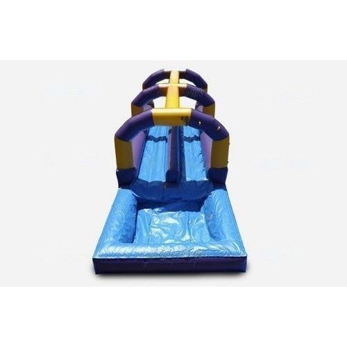 At Jungle Jumps, we are continually looking for new colors and styles. With this fun slip ‘n slide model, we’ve chosen purple, yellow, and blue vinyl fabric to add a visual appeal all its own. Riders enter one end, then slip down the extra-wide slide lane before splashing into the large splash pool at the far end. The inflatable arches add structure and support to this popular model. High sides keep young bodies in place as they race to the end. For outdoor parties and events, there’s no better choice than a commercial grade inflatable slip and slide by the leader in inflatable manufacturing.