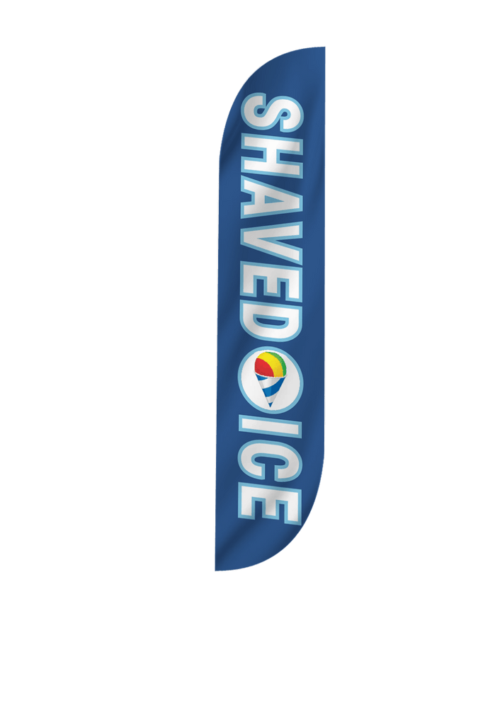This blue shaved ice feather flag will market your business to all passerbys and increase sales at your location. On those scorching hot days, what's better than the chilling experience of a Shaved Ice? Stick this feather flag in the ground, and let everyone at the event know that you've got what they need; shaved ice! Perfect for outdoor events, promotions, concerts, and festivals; this Shaved Ice feather flag is portable, easy to use, and tall enough to be noticed by anyone in the crowd. The Shaved Ice Feather Flag is ready to ship to your next event today!