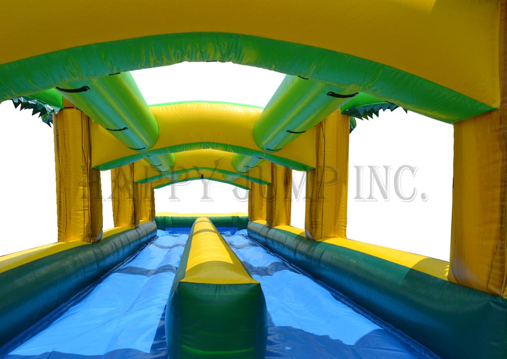 Cool off and dive into summer fun with our Slip N Slide! Perfect for kids and the young at heart, this inflatable adventure takes you sliding through palm tree-lined archways for an exhilarating ride. Connect a water hose to the bladder system in the center, and get ready for hours of wet, slippery excitement.