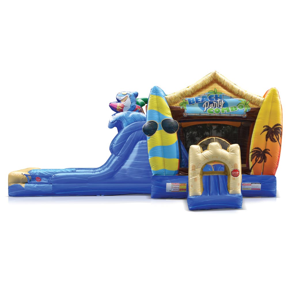 If you happen to see another online shop that offers a lower price than us within six months of your date please let us know and we’ll be happy to refund the difference on your original payment method. Moreover, because we are consistently working with our suppliers to get better rates we know that you can feel very comfortable and confident that you are seeing the best prices that can be provided for the products listed on our site. Moving forward if you find the same item that we carry on another website that has a lower price please submit that to us within six months of your purchase date and we will refund you the difference. If it is a case of seeing a lower price on another website and we need to send a partial refund simply email us the link to the exact product and brand from our site and also the link from our competitors site so we can inspect the pricing. Again this needs to be within six months from the date of your order and we will review your submission and apply a credit if necessary. Our 100% Shoppers Best Price Guarantee has some limitations: The item must have already been purchased from our site prior to asking for this to be reviewed and submitted. This does not include rebate programs or specific retailer programs such as buy three get one free type offers or any combination such as that are not eligible The item will need to be in stock from the competitors site that you’re submitting the information from The competitor must be an online store, they may not have a retail location (warehouse, showroom, or physical location) The website cannot be a wholesaler, liquidator, distributor, or auction website. Examples are eBay, Liquadation.com, Via Trading, overstock, etc. The competitor must also be someone who has been authorized by the supplier and/or manufacturer to resell the product you are inquiring about The Shoppers Best Price Policy must also include the product listing price and the shipping total, but will exclude any sales tax that gets added at the final purchasing invoiceThe Beach Party Combo Wet/Dry – Inflatable Bounce House with Slide and Tropical Theme is a high-quality commercial-grade bounce house designed for hours of safe, active fun. Built with durable, lead-free vinyl materials, this inflatable meets all safety standards for commercial and residential use.