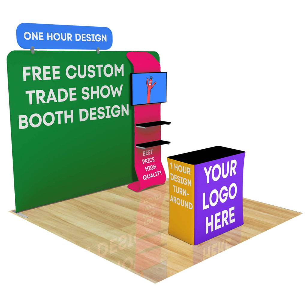 The 10ft FastZip™ Trade Show Booth by LookOurWay is guaranteed to turn some heads and attract the attention that you're brand deserves. Pick and choose the accessories that matter to you, and let our design team take care of the rest. Each Fastzip™ Tension Fabric Booth Component features a lightweight aluminum frame that is covered in a premium polyester fabric. All of the customized pieces are printed in full-color using our industry leading dye sublimation process and then hand fit and finished to ensure a perfect fit on every order.