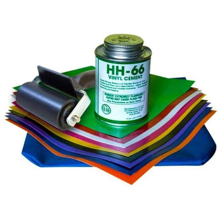Our Pro Bounce House Repair Kit pairs up a seam roller with a 4oz can of top-quality HH66 Vinyl Cement Glue and finishes it off with 9 of the most commonly used colors of commercial-grade 15oz PVC Vinyl for inflatable bounce house and water slide repairs. It comes complete with a carrying pouch for your vinyl patches for easy transport and storage.